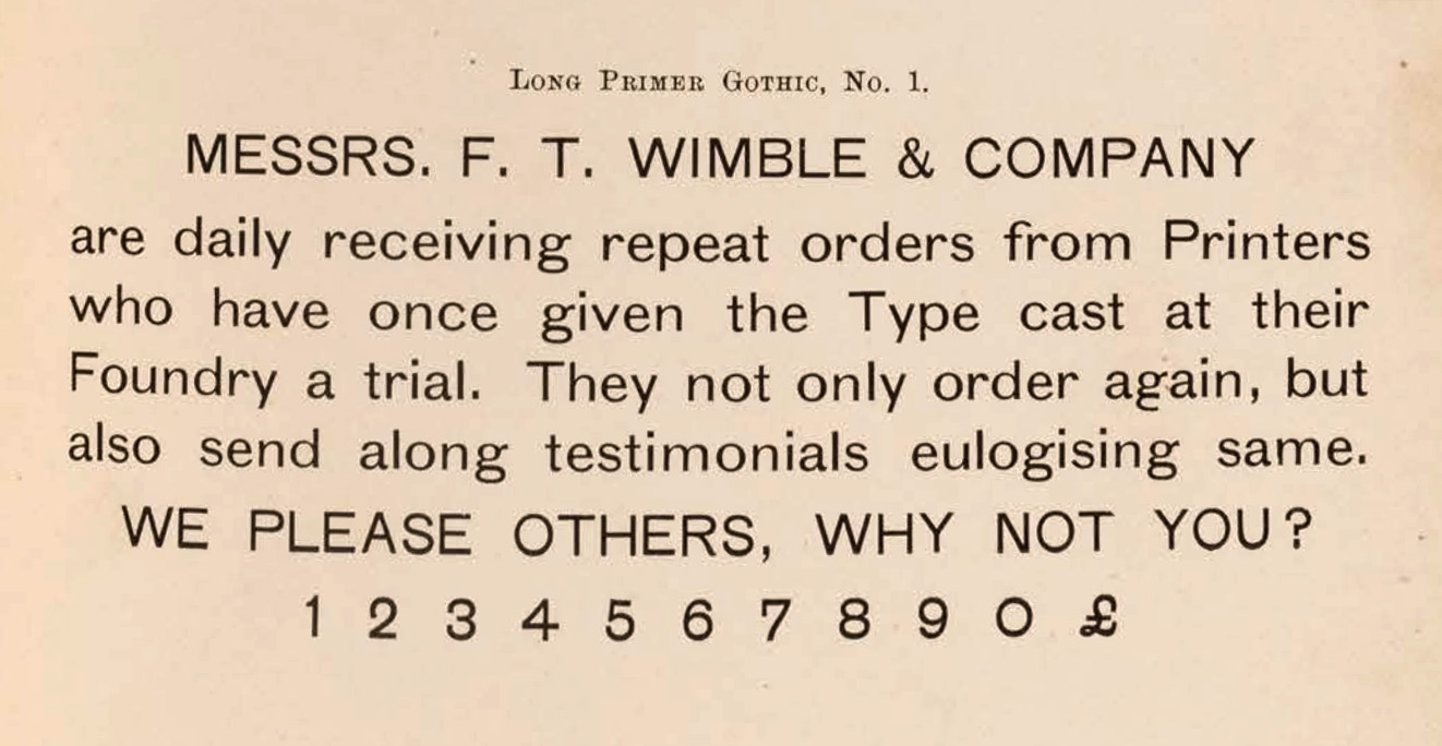 Gothic No. 1, Wimble Australian Type Foundry, c.1900.